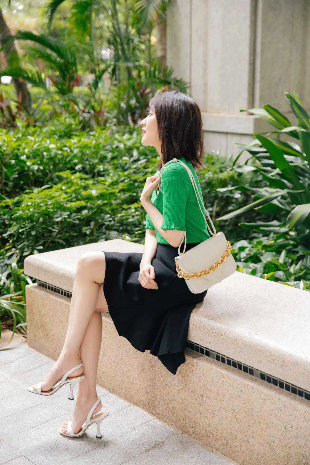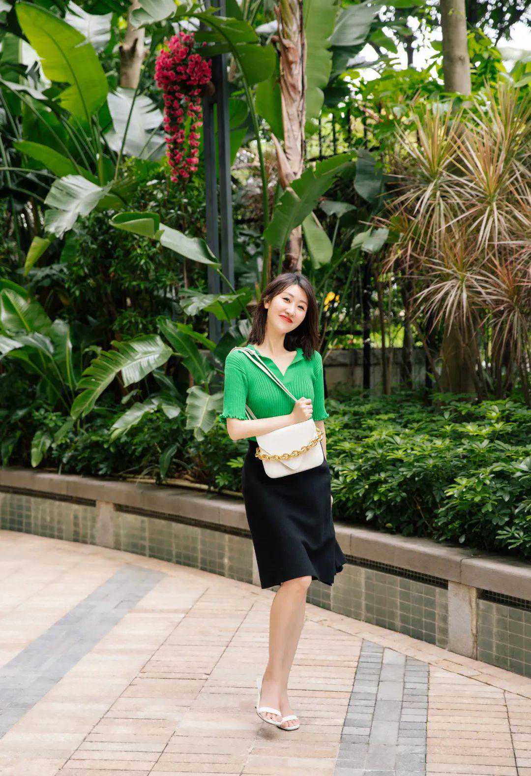 这身裙子鞋子的颜色都很“莫兰迪”,本来担心小黑包不搭,后来看图发现,黑头发也有黑头发的好处,刚好和包呼应哈哈。▼