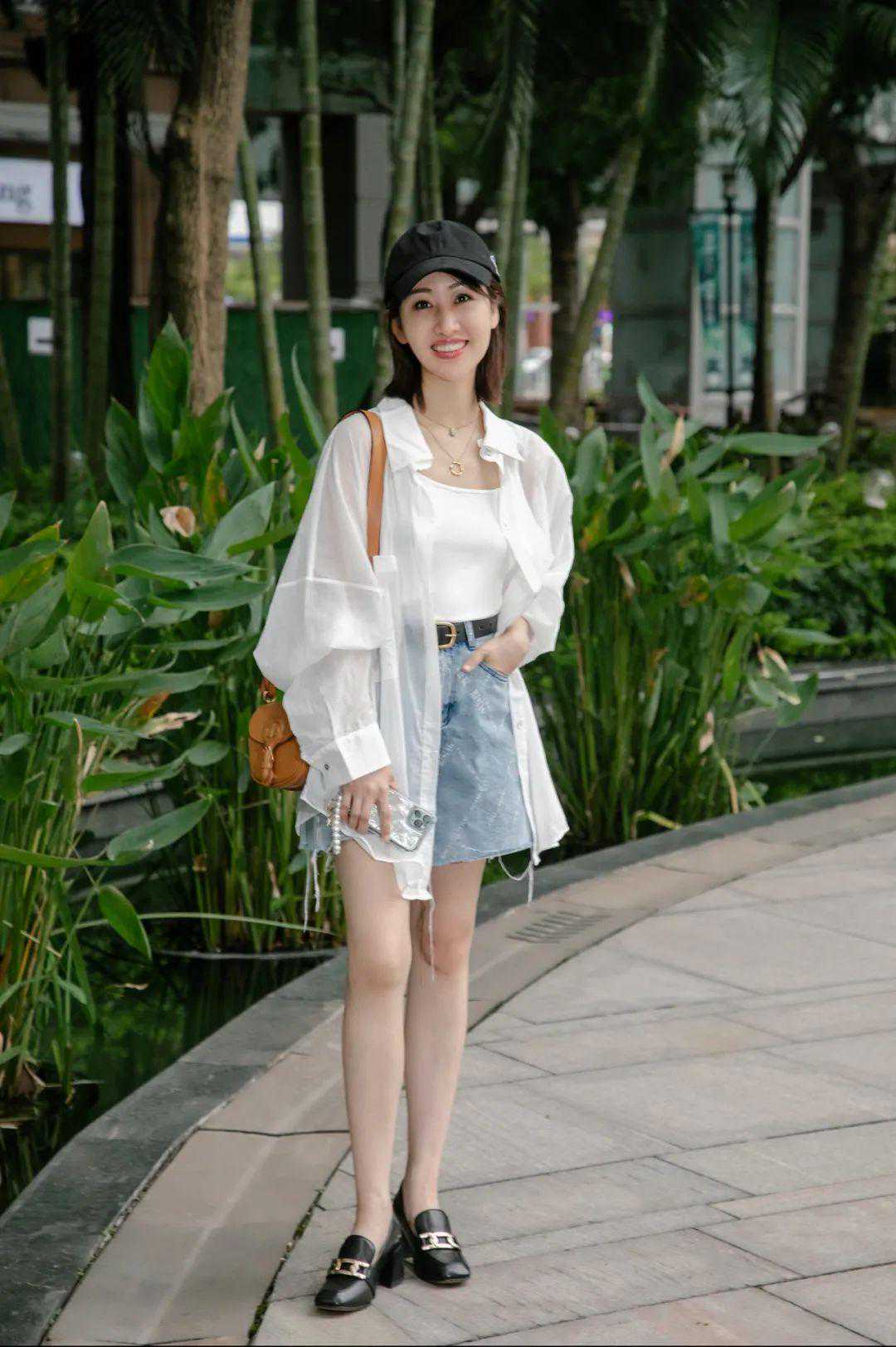 T恤搭半裙不显胖的秘诀就是,下摆打个结~▼