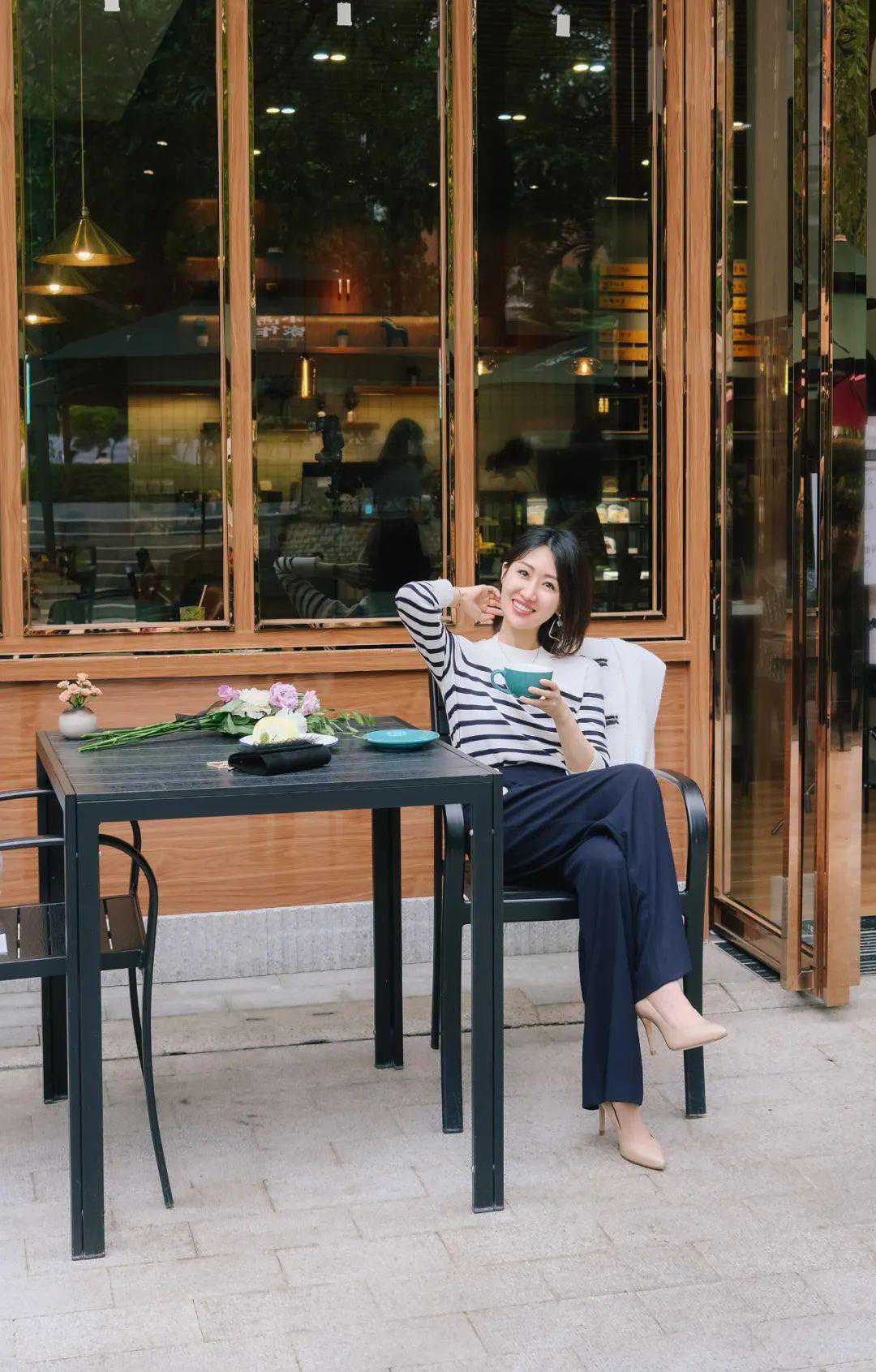 条纹衫配阔腿裤,再加上粗花呢外套,这是常见的法式风穿搭套路啦。别忘了再加一顶贝雷帽。