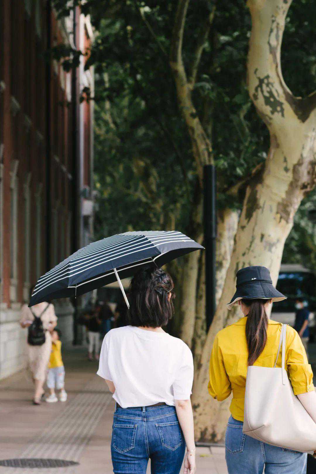那会儿上海的太阳有点“毒”,走在路上都离不开伞。▼