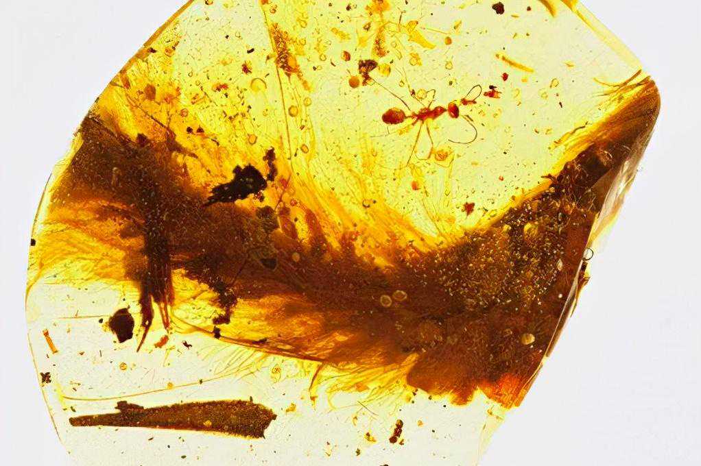 最近十几年间,竟然在蒙古也出土了带羽毛的化石,还有人发现了这种一目了然的琥珀。