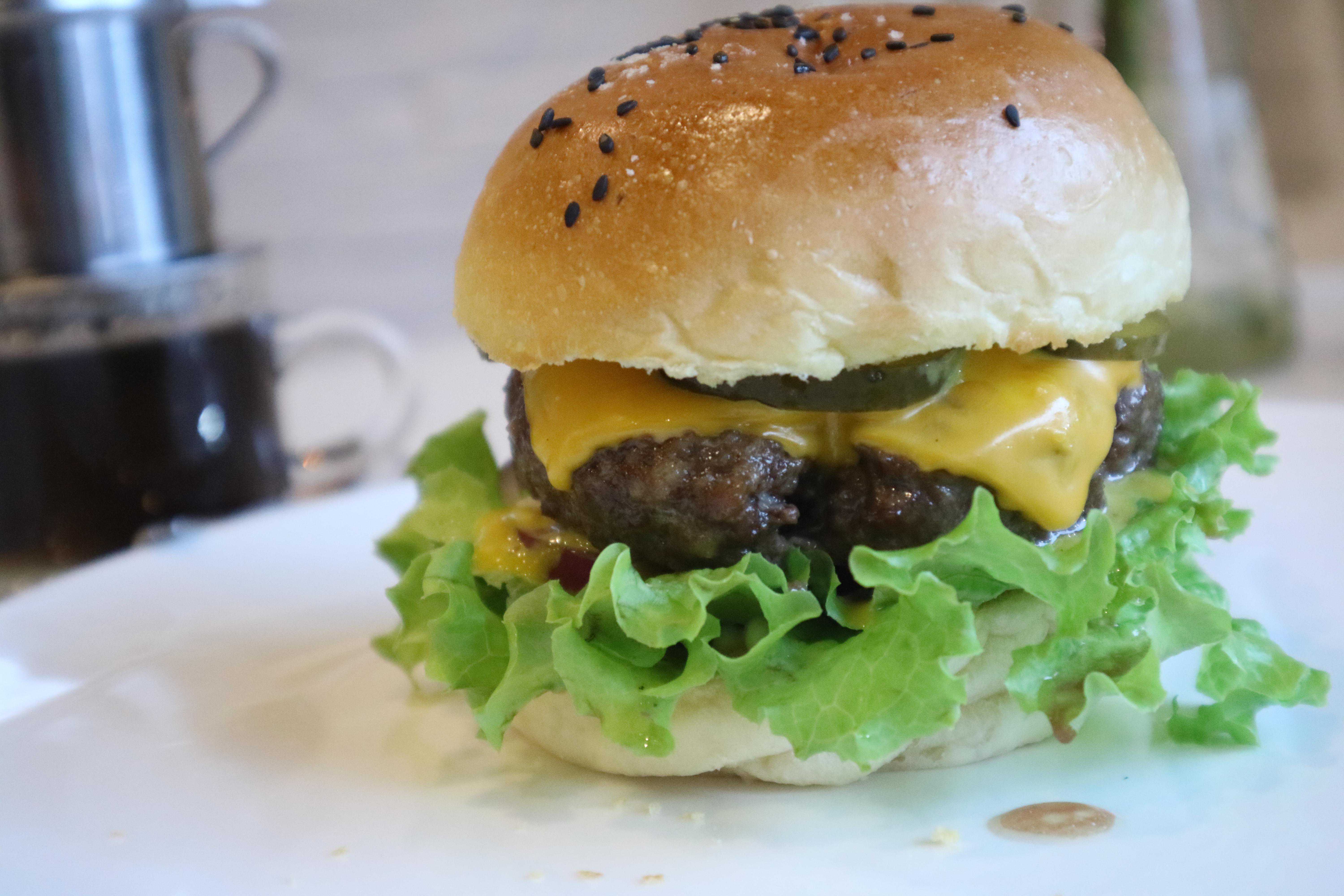 温馨提示:一个人正常饭量一个双层汉堡就可以吃的饱饱的。