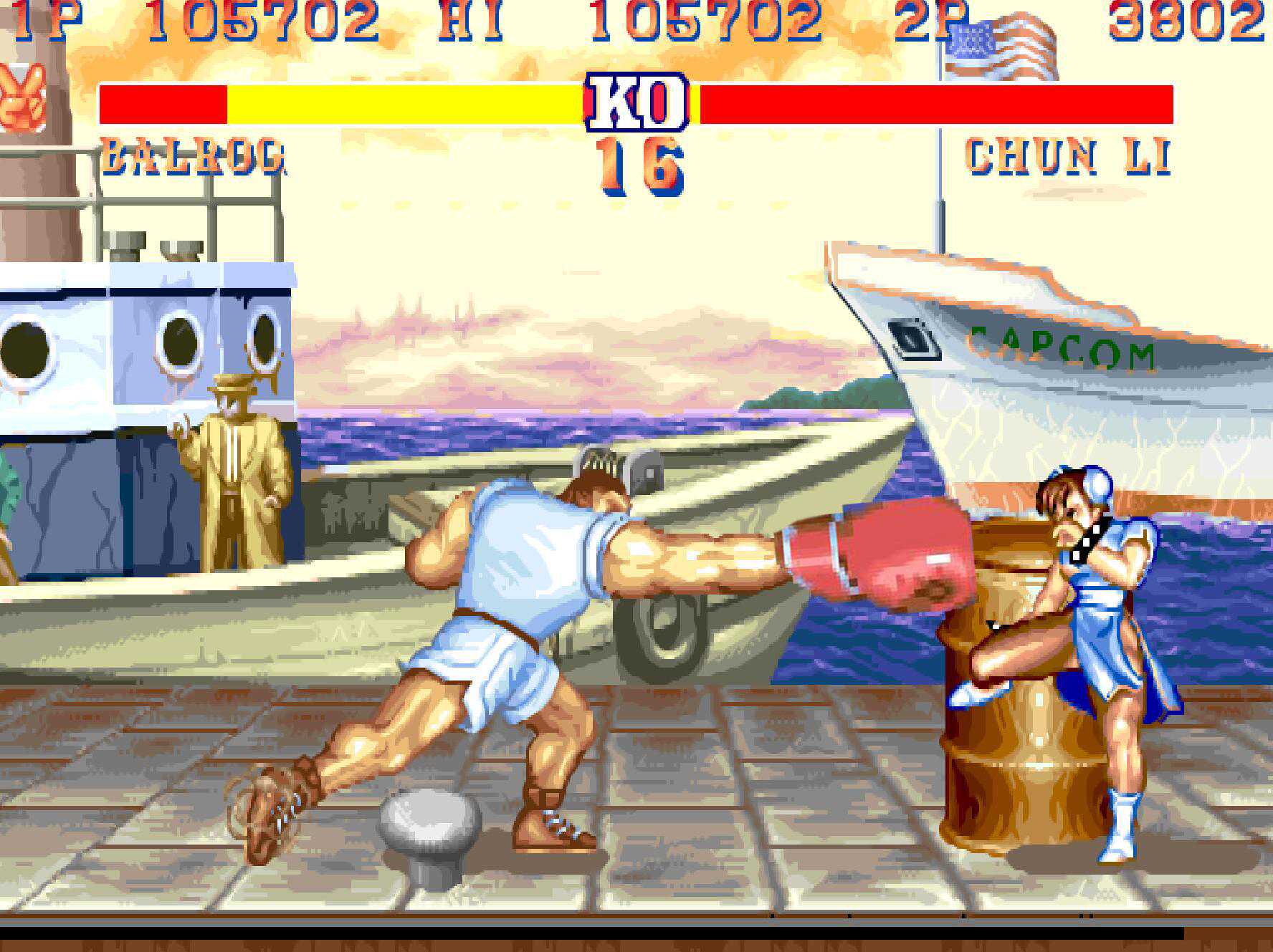 在《街头霸王2八人版》中,升龙拳的威力虽然大,但还是无法抗衡沙加特的“猛虎上升切”的威力,毕竟有BOSS光环加成。