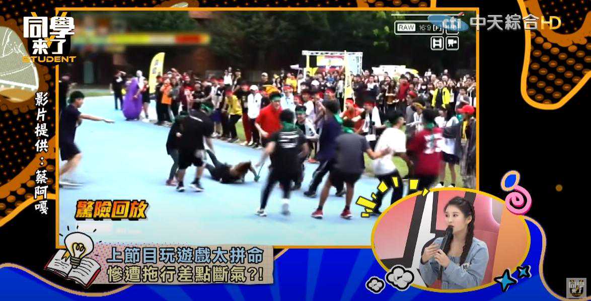 没想到游戏开始时,因为大轮胎实在太重了,她求助在一旁的男同学帮忙拿,没想到对方跑的速度实在太快,完全跟不上速度的琳妲当场跌倒,绳子顺势滑到脖子卡住,整个人被拖着走。