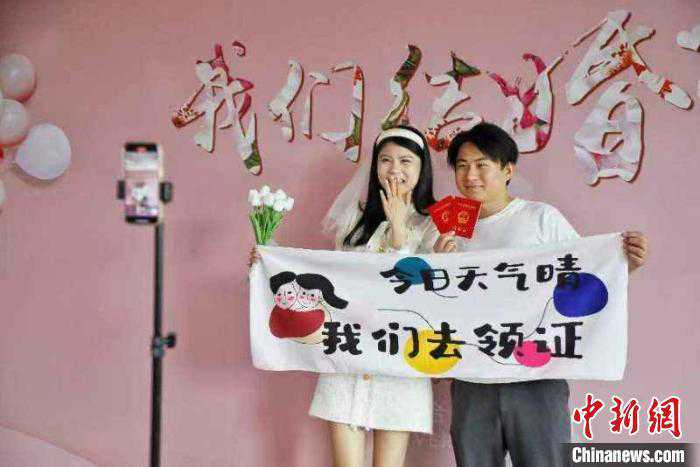 结婚登记是人生大事,选择有特殊意义的日子登记是新人们对婚姻美满的期待,每年的5月20日成为新人们结婚登记的高峰日之一。早上8点,在泰安市岱岳区婚姻登记处,前来领取结婚证的准新人已经开始在大厅外排队等候。在领证现场仪式感满满,玫瑰花、情侣T恤、头纱……不少新人的精心准备让人眼前一亮,领取结婚证后,新人们纷纷在背景墙前拍照留念。