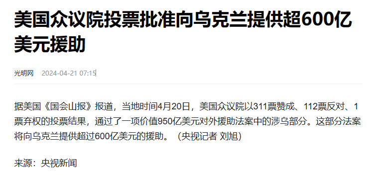 目前,美方已经通过了条约,确定向乌方进行援助,援助也很快就会到。
