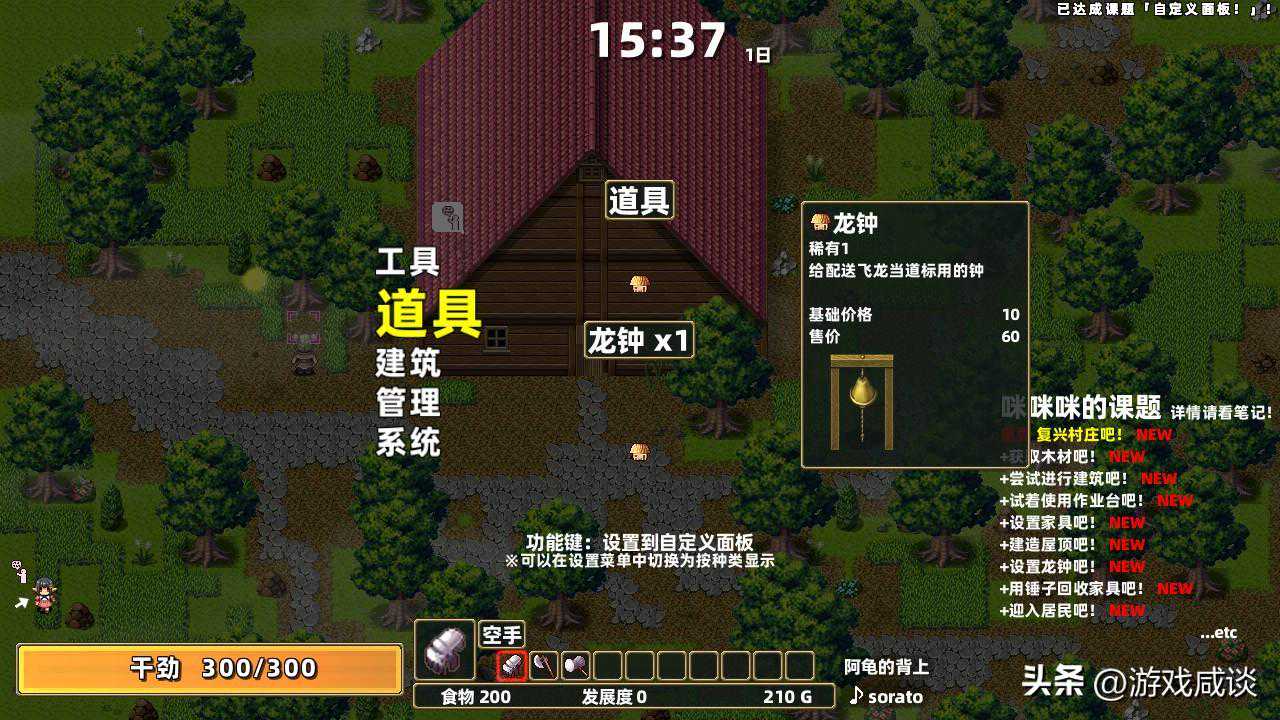 《龙背上的农家》这款游戏最令我感到意外的一点,是它居然只有不到90M的容量,但是却给玩家们提供了一个广阔的巨龙世界,如果沉浸其中的话,可以玩非常久的时间。不过这款游戏在新手引导和操作性方面的问题非常明显。虽然有任务清单告诉玩家前期要做什么事情,起到了一点引导的作用,但实际上却几乎没有告诉玩家怎样做才能完成清单上的那些事项,几乎没有实质意义上的新手教学,游戏玩法和操作都需要玩家自行摸索,如果不是接触过农场模拟经营类游戏的玩家,会感觉前期无所适从。另外,由于本作使用的开发引擎是WOLFRPGEditor,这是一款和RPGMaker有几分相似的引擎,做出来的游戏是使用键盘进行控制的,这对于需要大量手动操作的种田类游戏来说是非常累人的,包括系统功能菜单的使用,在只能使用键盘的情况下显得十分繁琐。