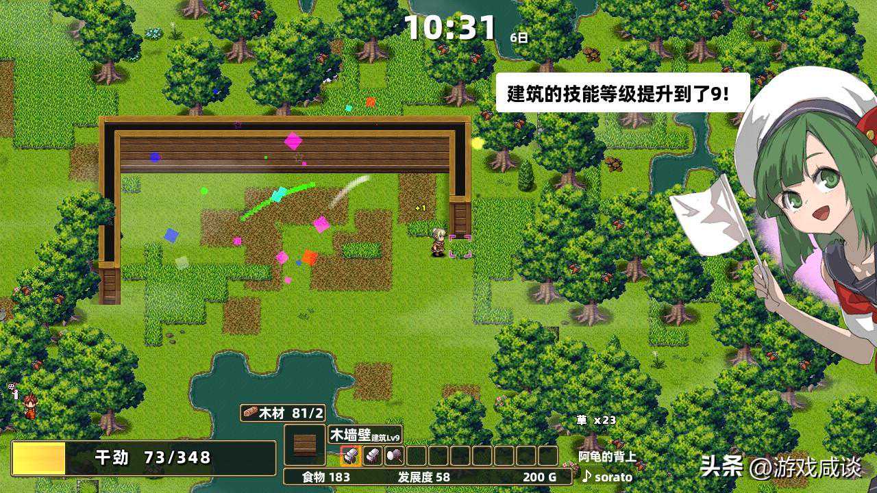 木材够用之后,我们就可以在清理出来的开阔地上盖房子了。游戏前期我们会在“村长”诺娜家附近找到一些断断续续的木质墙壁,这里就是我们前期盖房的好地方了,只需要将墙壁建造完全,然后盖上屋顶,加上房门,就可以大功告成。虽然过程看起来很简单,但是由于本作不能使用鼠标进行操作,所有的操作都只能依靠键盘,因此操作起来很不舒服,需要一定的耐心。房子盖好之后就可以分配给招募来的冒险者居住,我们可以在以后委托这些入驻我们村庄的冒险者去帮助我们做一些他们各自职业能做的工作。