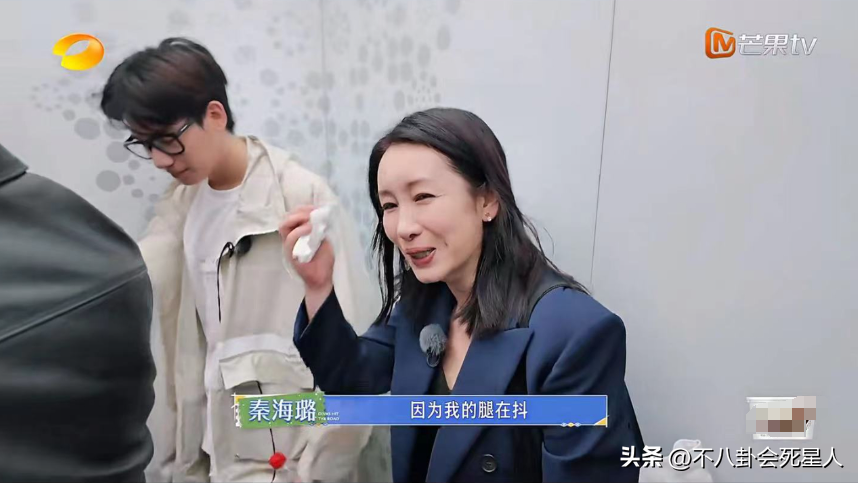 秦海璐本来想打扮得端庄得体,专门在包里揣了双高跟鞋,结果腿抖得站都站不住,看来这高跟鞋带得是多此一举了。