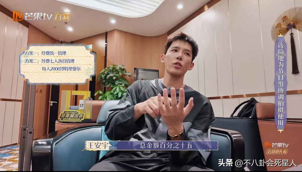 秦岚在节目中贡献了许多笑料,她知道自己算错了人数,实际要七个人花一百时,崩溃地直接贡献出了“对眼”表情包,在后期小哥的加工下,更好笑了。