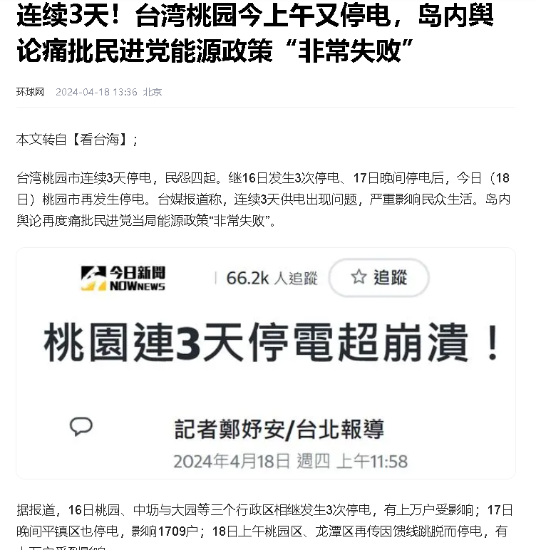 不得不说台湾政府真是无敌了!自己当地的基本用电问题都保证不了!