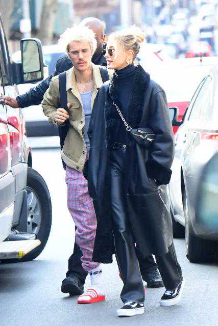 海莉和比伯在在时尚方面可以说是做到了旗鼓相当,只不过两人演绎得风格截然不同。身穿一件浅色的外衣,身后背着一个黑色的双肩包,脚下踩一双红色的拖鞋,混搭的比伯简直不要太接地气。梳着高马尾的海莉一身简单干练的黑色穿搭,干练十足又非常得帅气,双手插兜看起来很有大佬的派头。