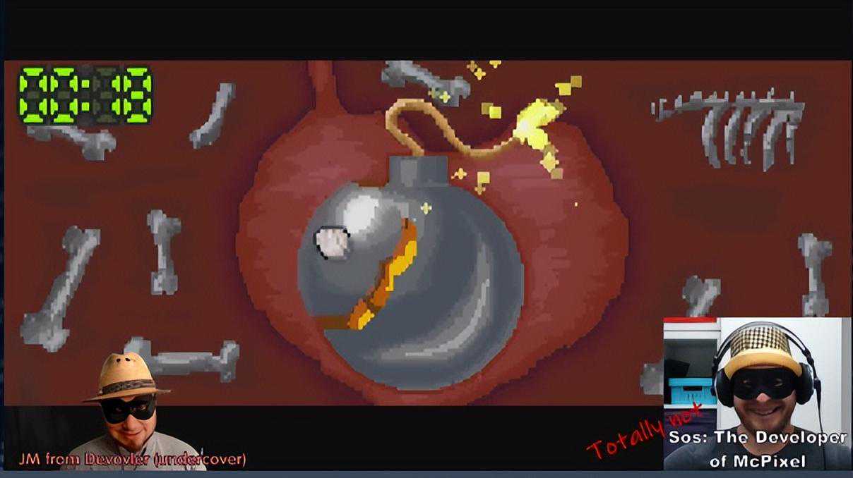 比如通过喝水灭火。又如游戏中像素哥作为职业拆弹家,要如何在拆弹时保住小命呢?除了前述的吃下坐马桶大法,还有裹上被子变身青虫吃掉炸弹(怎么还是吃),这真的很离谱!