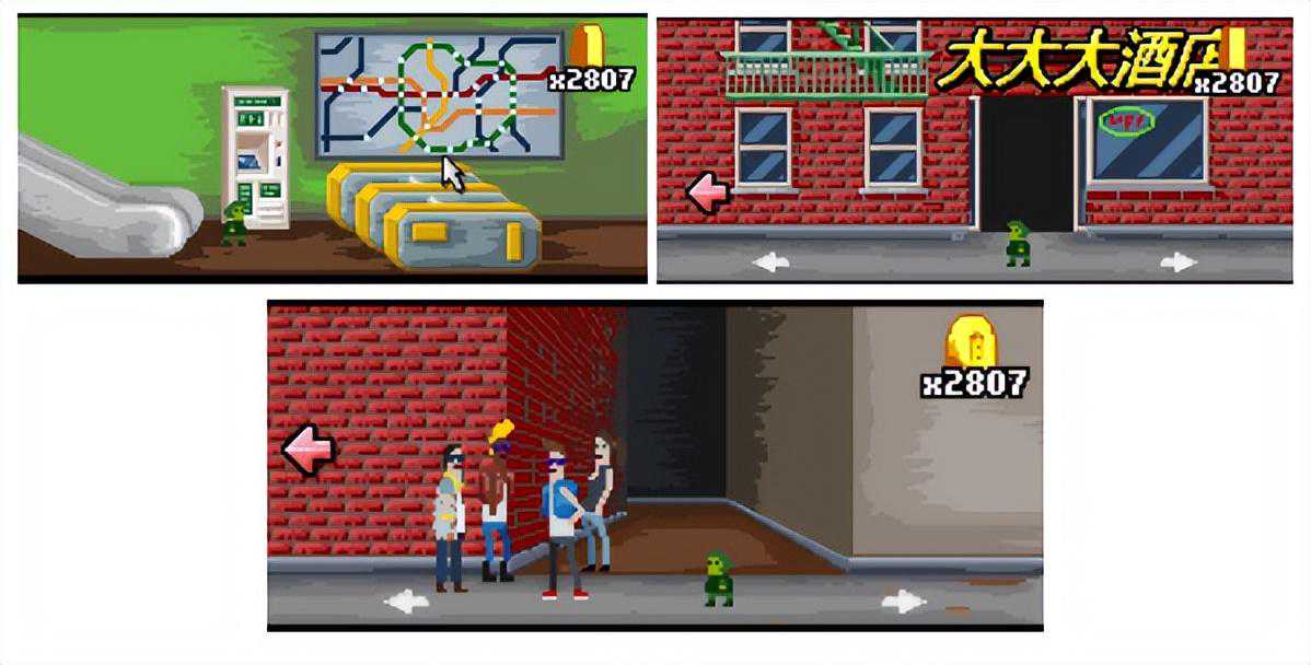 接着,你就不必抱有太大精神包袱,只要和像素哥一起在小城镇里闲逛即可,没事踢下人屁股,或者对着盆栽表达“人有三急”。你可踏上列车,或者一路左行走进电玩城、大酒店和停车场,潜入地铁……解锁一段段主题式解谜之旅。
