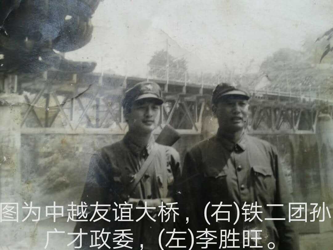 政委孙广才(右)与警卫员李胜旺在河口大桥留影