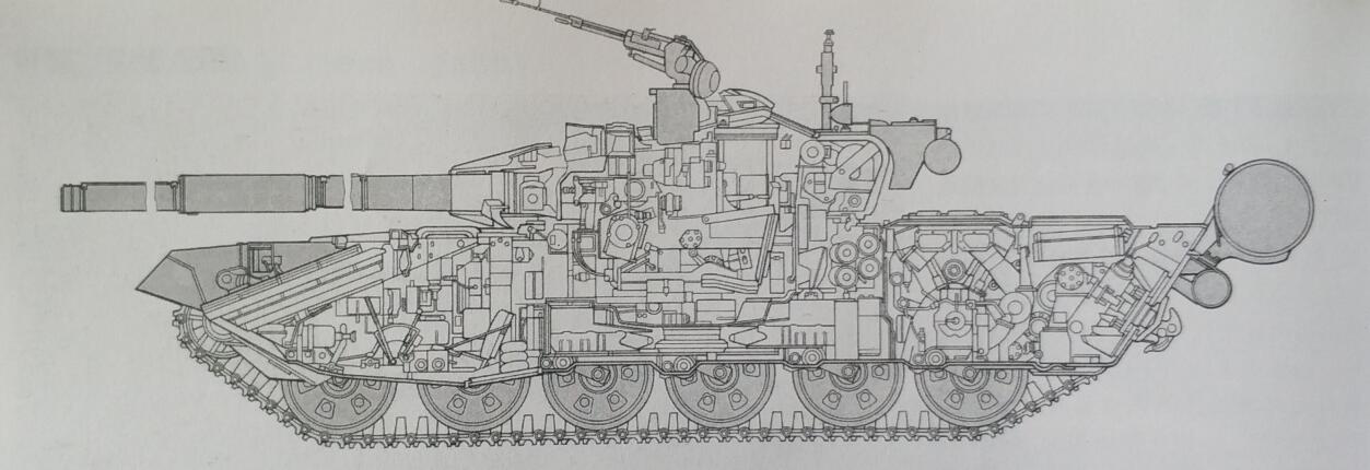 有资料显示T-90坦克的研制工作最早始于1990年。而T-90坦克也将设计思想的重点放在了火力和生存性方面。例如T-90坦克的车体采用标准钢材进行制作,并辅之以陶瓷、复合材料。在一些关键的部位还填充了专门用以防护化学能弹药攻击的专门填充材料来加强防护,毕竟在这个年代里,对面美国家里的M60A2坦克、M551谢里登坦克还有没有上得厅堂的MBT-70坦克全部都是发射化学能弹药的好手。