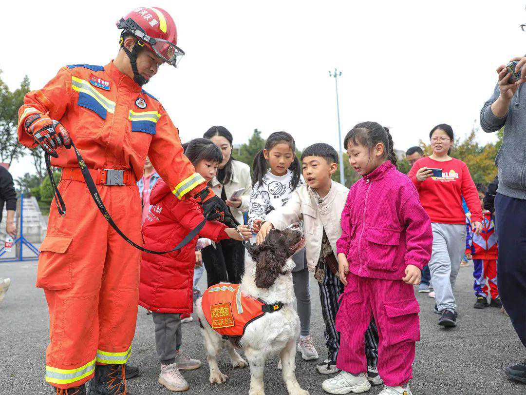 除了“蓝朋友”的热情招待,搜救犬也和小朋友们玩起了刺激的“躲猫猫”游戏。小朋友们躲藏在搜救箱中,搜救犬在听到指令后,对搜救箱逐个嗅闻,准确快速地找到他们的藏身之处。跳挡板、过隧道、飞跃独木桥,搜救犬与消防员的默契配合赢得小朋友们的阵阵欢呼。