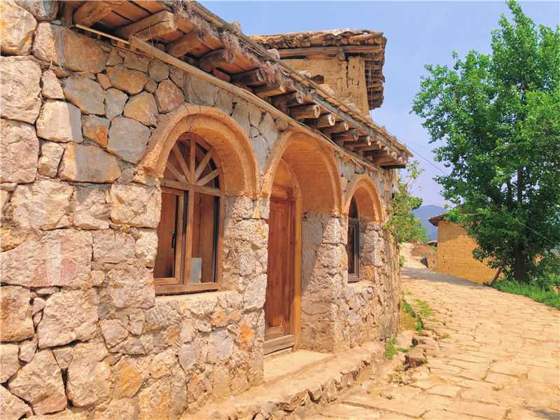 贝山陶庄的房子层层叠叠,空地上、台阶上、砖墙空隙里,都摆满了各式各样的陶器,密密麻麻堆在一起,看似杂乱无章,实则极具个性,符合现代年轻人自由、随性、洒脱、大胆的性格和生活追求。石头筑起的城堡、随处散落的陶器,看似随意摆放的陶罐为这里增添了一抹抹艺术色彩。