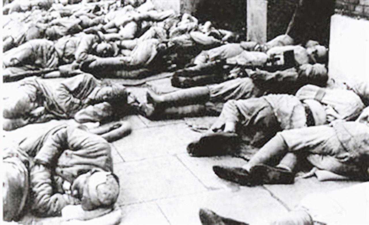 清晨的马路上,一排排卧躺着黄布军装的解放军。为了不打扰市民,这支胜利的军队选择了一个前所未闻的休息方式:在城市中露宿。
