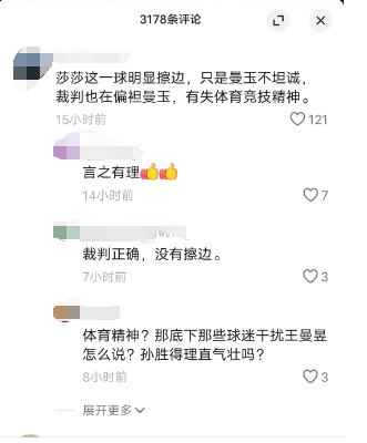 比如就有网友会说,这一球明显擦边,只是王曼昱不坦诚,裁判也在偏袒她,有失体育竞技精神。