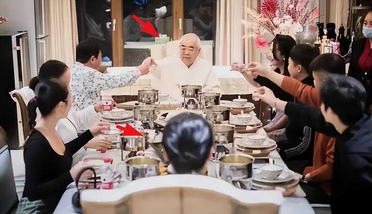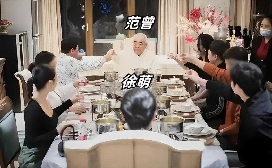 范曾坐在主家的位置,而他的小娇妻就坐在他的对面。