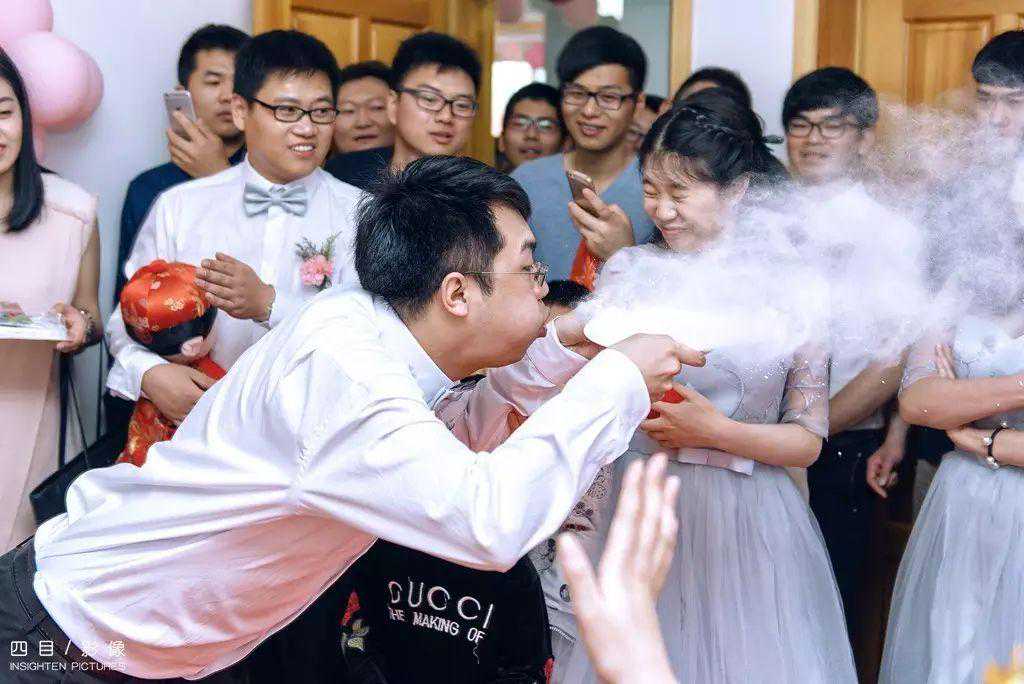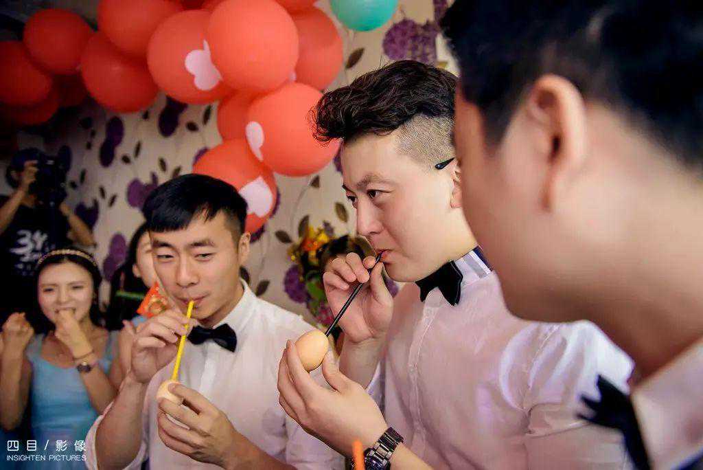 看到这个我觉得上面用头磕鸡蛋的已经是良心发现了,生鸡蛋吸进嘴里是什么感觉,希望广大伴郎们都有机会尝试一下。