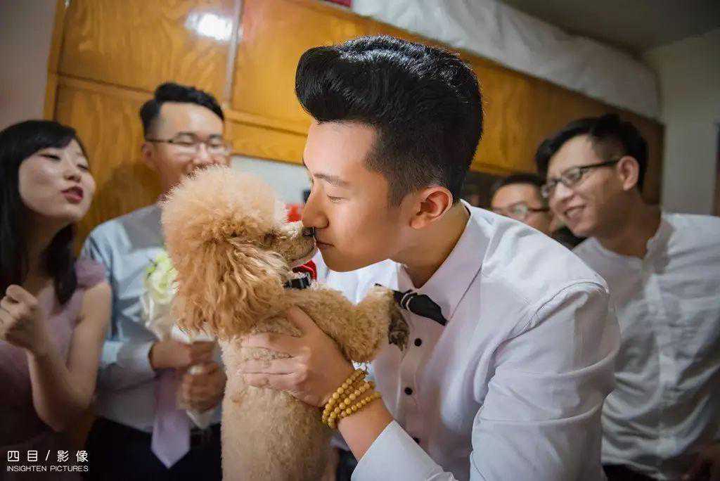 狗狗可能是新娘最亲密的小伙伴和好朋友,想要娶走新娘一定要先记得跟小可爱搞好关系,这一步可能会为你加分不少。