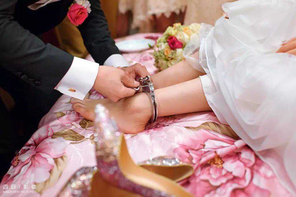 新娘直接铐上,找不到钥匙的话新郎就只能抱着伴郎哭哭了。