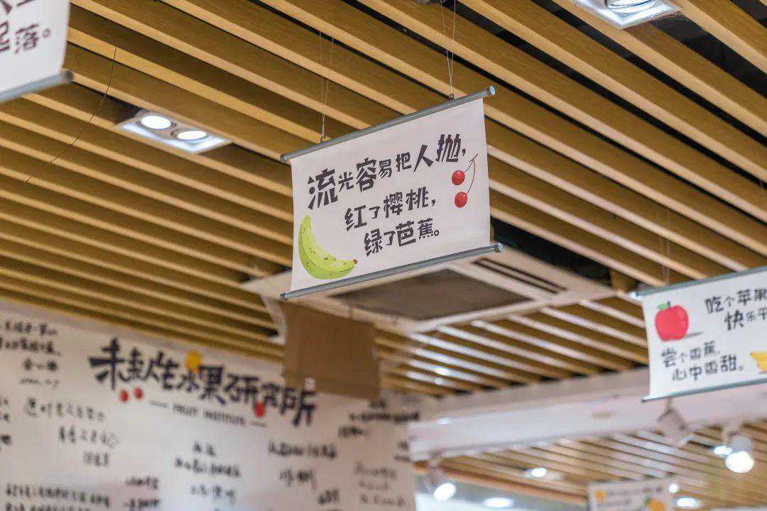 我们这次展览以水果为载体,融入敬老、爱老、爱己三个主题,将“大道理”艺术化地转化为“知心话”。初衷是希望通过购物者、参观者能够通过展览中的一句话或者一张图,能有所启发、有所感悟!未来,我们也将继续扩大街区商业的一个能量联动,将社区营造X正能量店继续创生,让每一间商铺连接一个正能量主题,让街区成为最好的发声地、最好的艺术场域。
