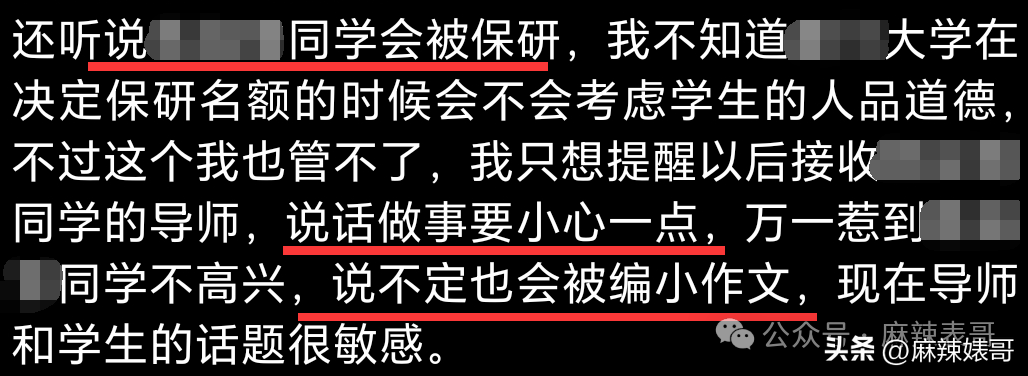 据说女生被保研,杨波提醒导师注意和女生说话的分寸,不然会被写小作文。