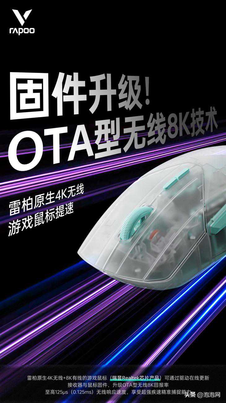 搭载瑞昱Realtek芯片的雷柏原生4K无线+8K有线游戏鼠标,全面提速!OTA型无线8K增值提速,无需额外购置接收器!便捷、稳定,提升体验。