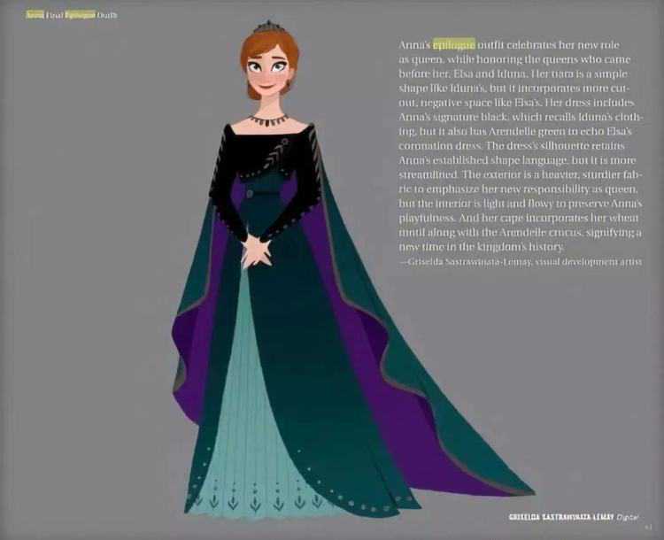 安娜在新的电影里肩负了保护阿伦戴尔王国和解开魔法森林诅咒的重担,一条庄重大气的礼服裙正是她勇敢无畏的象征。
