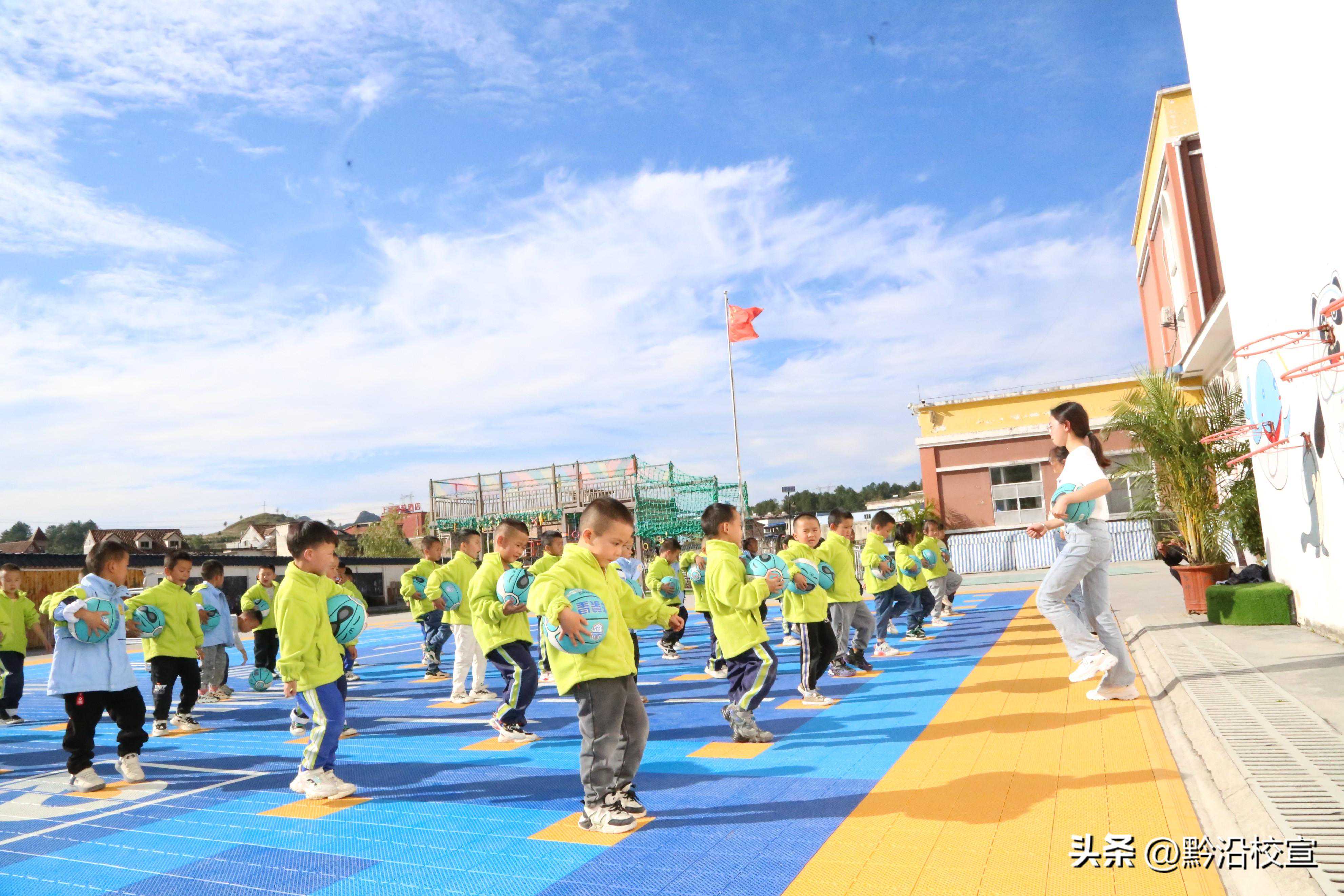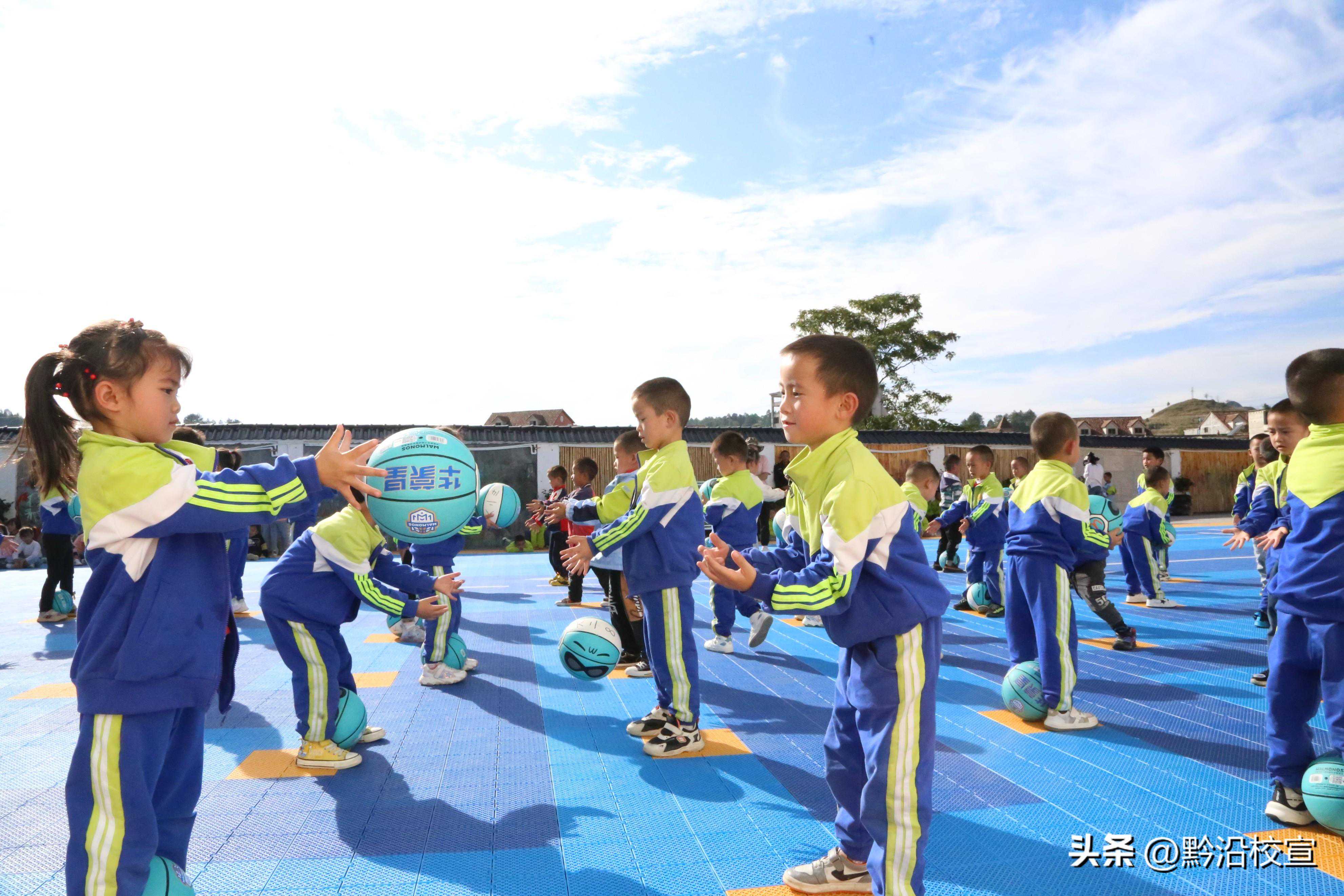 随着音乐的响起,大班的哥哥姐姐精神饱满、整齐划一,熟练自如地演练篮球操,有单手拍球、双手拍球、左右手交替拍球等,游戏环节老师精心编排了各种花式玩球,既有阵势又有气势。展现出大班幼儿勇于挑战、友好合作、一往无前的精神风貌,这成为上司幼儿园一道靓丽的风景线!