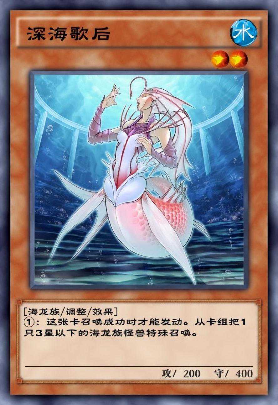 水产神卡,这张卡的厉害之处在于召唤成功的时候从卡组将一只三星以下的海龙族怪兽特殊召唤,毕竟卡组定向检索可以快速拉出核心,无论是超量还是同调都非常不错。最主要的是这张卡本身还是水属性,配合青蛙轴的话会更加灵活,不过目前环境中水产与蛙轴相性并不是非常好,因此深海歌后主要以搭配海龙族为主。配合海皇系列组件可以在调度资源的同时完成水产展开,强推!