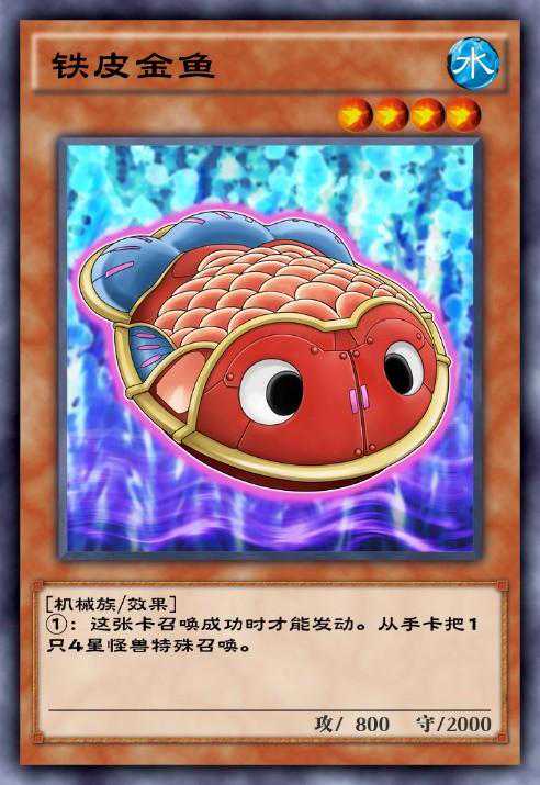 与飞机、发条鲨等卡牌有着异曲同工之妙,基本都是在召唤成功之后从手卡特殊召唤一只四星怪兽,通过这张卡的效果我们可以稳定调度手卡中的怪兽资源。不过更具优势的地方在于这张卡是水属性怪兽,可以配合部分调度水属性的怪兽进行展开。同时这张卡也是机械族怪兽,配合金银零件也能有不错的展开效果。