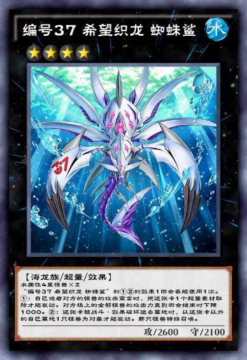 这次新卡包里的蜘蛛鲨也是我非常喜欢的卡牌,水属性R4泛用单卡,同时也是以打点为主的怪兽。这张卡的厉害之处在于可以在双方攻击的时候拔掉一个素材降低对手场上所有怪兽1000点的攻击力,极大程度弥补了水产打点不足的弊端,这也是这张卡的优势所在。除此之外这张卡还可以在被破坏送墓之后从墓地特殊召唤一只怪兽,这一效果可以配合送墓来调度一些本身召唤难度非常高的怪兽,在后续环境中有着非常重要的表现。