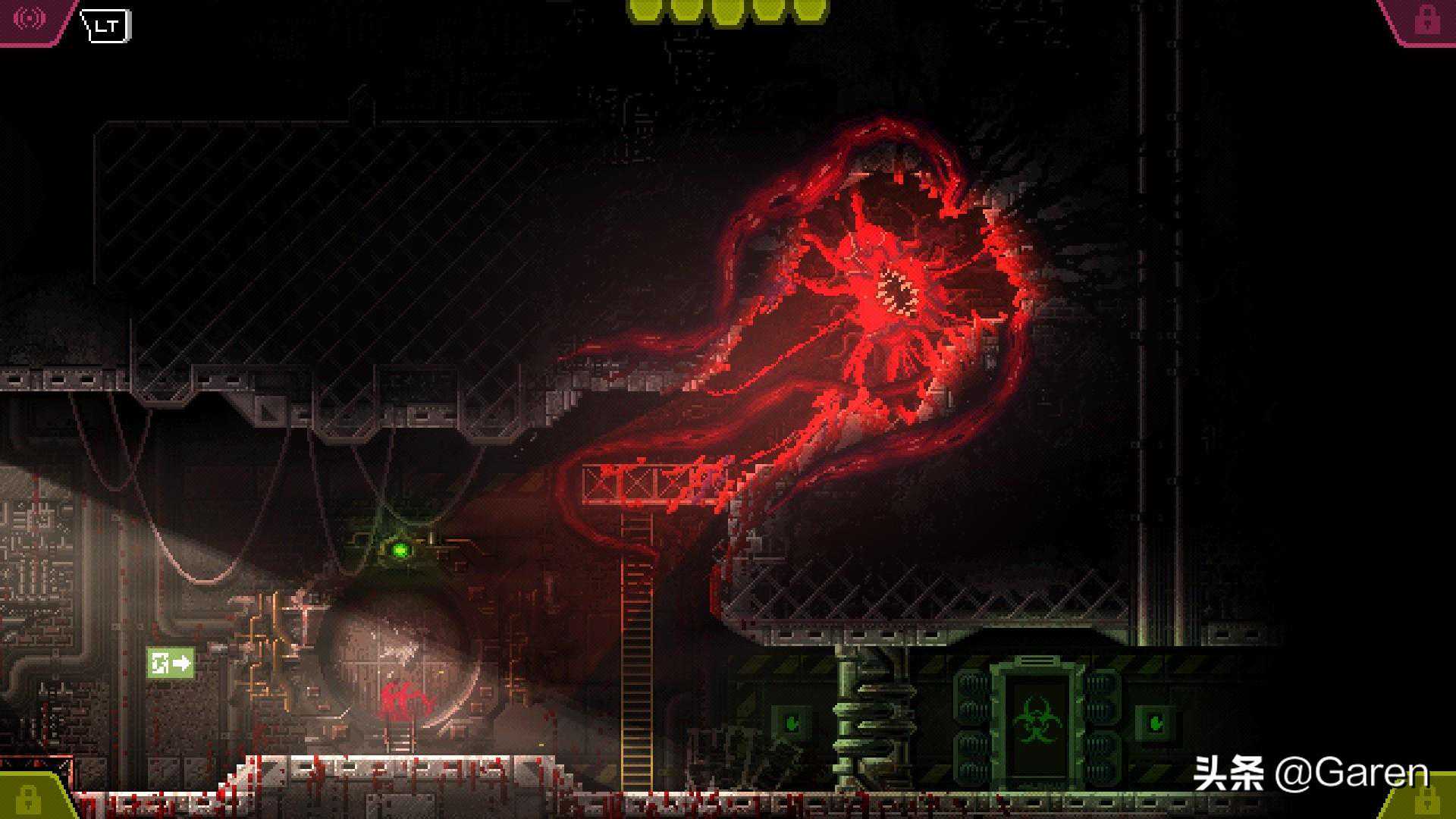 《红怪》,由Phobia开发的逆转恐怖游戏,满足你对怪物的力量幻想。扮演名为“CARRION”的触手生物,对囚禁“你”的监狱展开疯狂的花式报复,恐吓、屠杀并吞噬那些科研人员以及士兵们,把恐惧和慌乱传播到每处角落。作为像素风的解压动作闯关游戏,本作有佳作潜质。动作部分有很棒的物理引擎,丝滑的触手移动、多样的进攻方式加一口一个的吞噬体验让人欲罢不能,但游戏侧重解密体验,进化能力与怪物成长体型多为此服务,整体节奏把握稍差,且流程偏短没有地图指引。