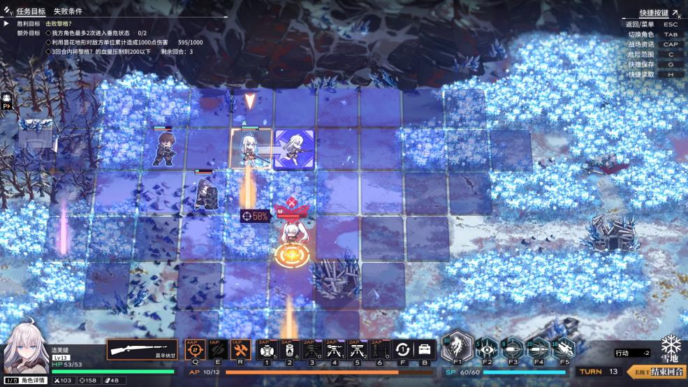 从玩法上说,游戏本身是战棋类游戏,所以玩家对人物的操作依然是走格子的回合制。战斗的过程比较传统,玩家可以通过选中我方角色以消耗AP点来进行移动或攻击,或者是消耗SP点来说释放技能,直至这些点数耗尽。