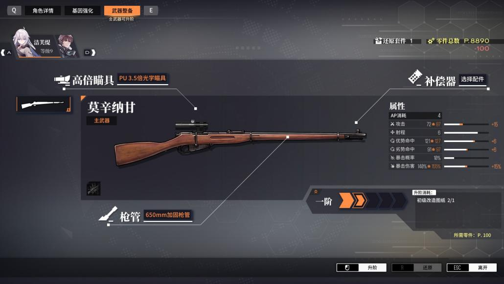 武器的强化包括武器的升阶和配件装配两部分。本作中为玩家提供了多样化的武器选择,其武器种类包括手枪、机枪、步枪、冲锋枪及军刀等。不过枪械升级和装备的选项相对较少,像是刚开始时蒙德的幼蟒、洁芙缇的莫幸纳甘都只有三个配件槽位,导致武器强化方面缺乏更深度的体验。
