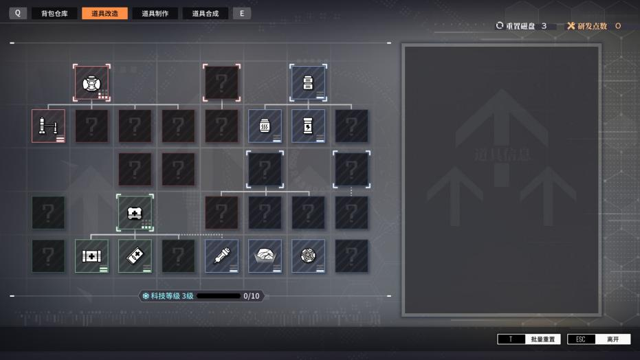 在这里还可以通过获得的研发点数对道具进行升级。可以提升它们的携带量、施放距离、伤害值等等效果。最后值得一提的是,虽说也能在战斗中进行合成,但需要消耗AP,所以没有紧急的情况时,还是在这里把物资准备好是最保险的。