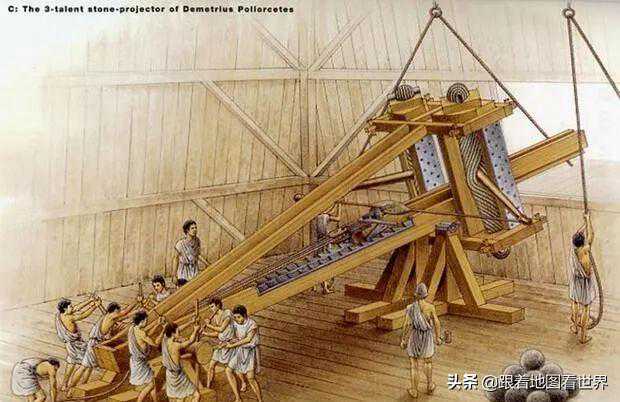 事实上,这种投石机与传统投石机所不同的在于其发力原理。原来欧洲的投石机以纤维或动物的筋拉扯所产生的反弹力挥出投石杆。