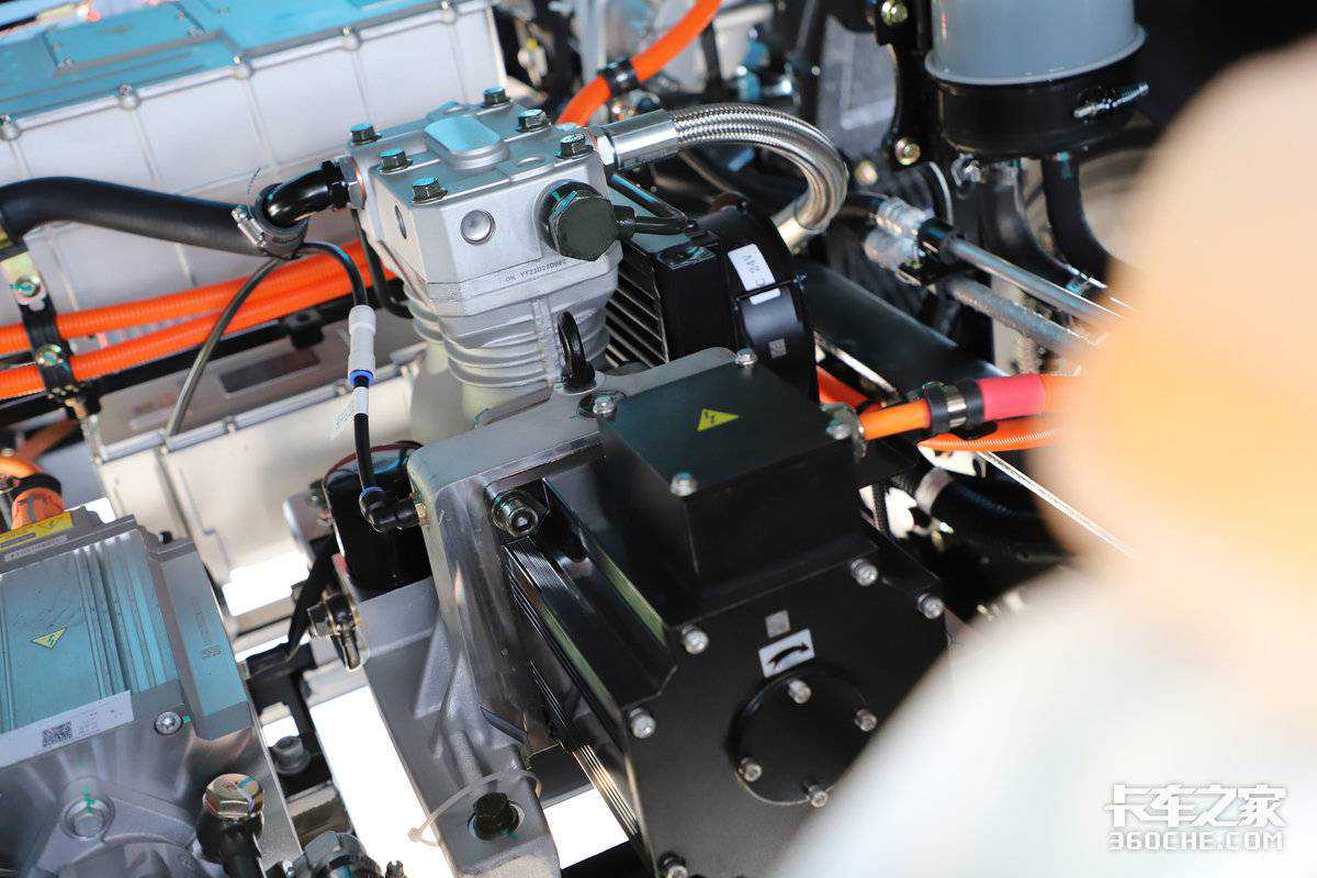 在电机匹配上,该车搭载了一台峰值功率/扭矩为550马力(405kW)/2400牛米的永磁同步电机,动力输出相当强劲。而且这台纯电重卡的热管理系统和整车控制器均由三一自主设计,这一点我们要为三一点赞!