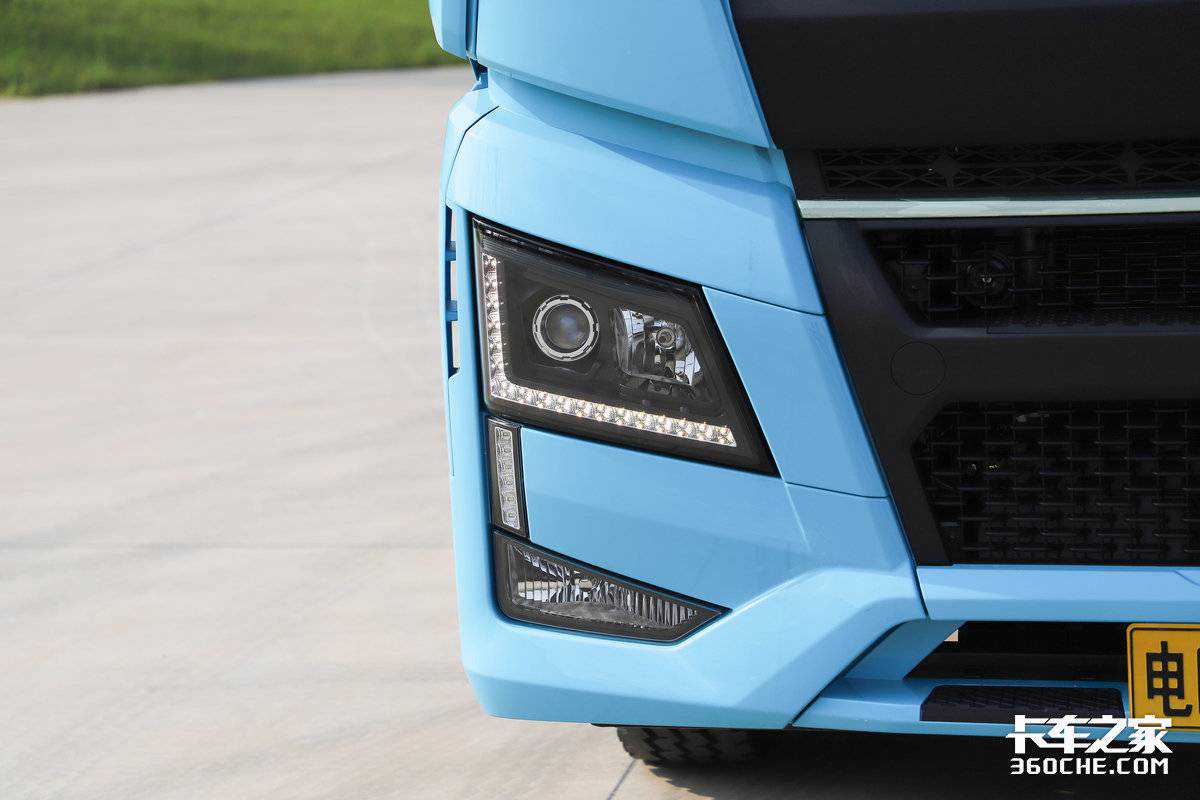 这款三一重卡江山EV425-270km电动牵引车的灯组采用集成化设计,从上至下分别是转向灯、远近光灯、日间行车灯、雾灯。近光灯带有透镜,在保证了更好铺路感的同时也能进一步保障夜间行车安全。