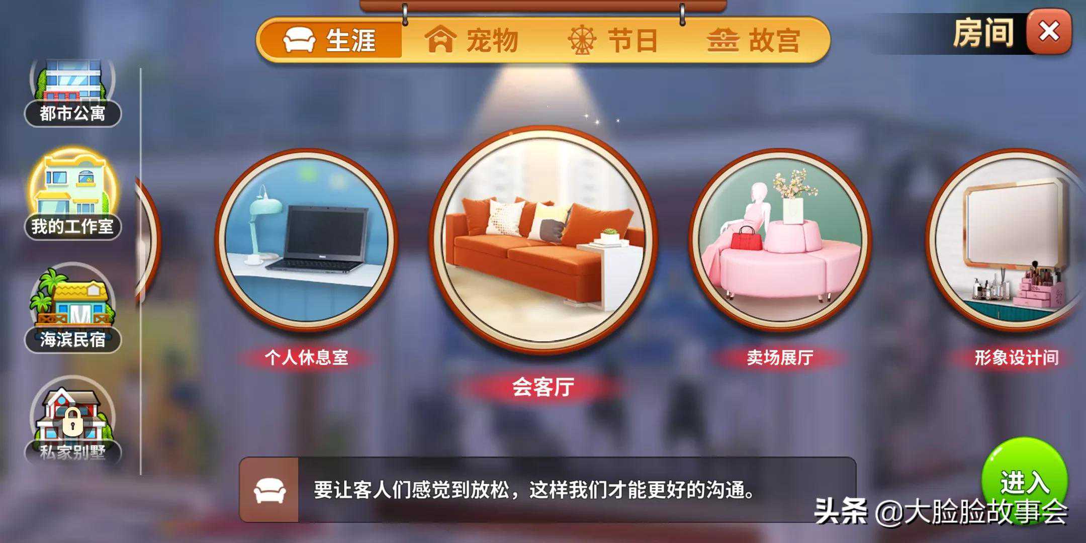 这个系列有五个装修房间,但是越到后面游戏难度就越高,小星星也就越难攒,基本上要连完三四关,差不多1600多个星星才能购买一件家具,有些大家具需要的星星就更多。我现在装修的是海滨系列的迎客大厅,才装了地板和墙面,楼护体,差不多还有十五项未装家具。