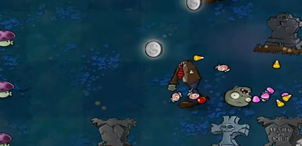 在游戏中的表现是,当僵尸被击杀时,会爆出各种糖果,看起来也是非常的喜庆和欢乐。