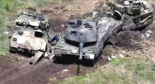 被击毁的“豹2”坦克和M2装甲车