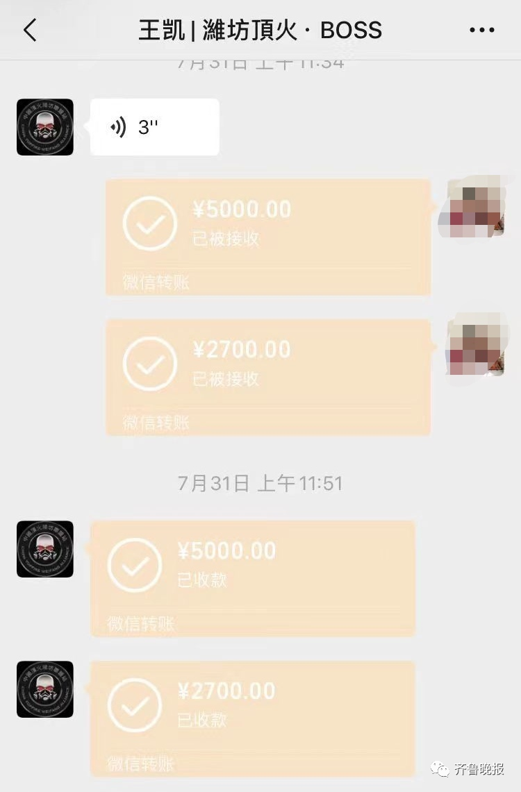 “顶火越野改装”的工作人员给出了所需费用:“共五个人,一个小孩不占床位收500元,其他每人1800元,共计7700元。”从交费聊天记录来看,吴先生将钱交给了“潍坊顶火改装”一名叫“王凯”的负责人。