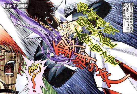 接着说回港漫剧情,在《拳皇96》里,作者在游戏剧情基础上,进一步激化了草薙八神两家的仇恨,更是根据官方的设定资料脑补了一个讲述两家祖先如何结仇的《拳皇外传》。由于图源实在是难找,我就暂且用文字叙述吧