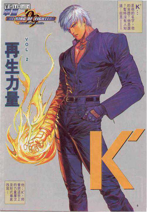 在《拳皇99》中,又出现了一种新的力量“再生力量”以年为单位,由当时大蛇的力量中领悟而出的更强的力量。这次作为游戏主角的K,在漫画初期用这力量教了所有“强者”一遍“做人”。