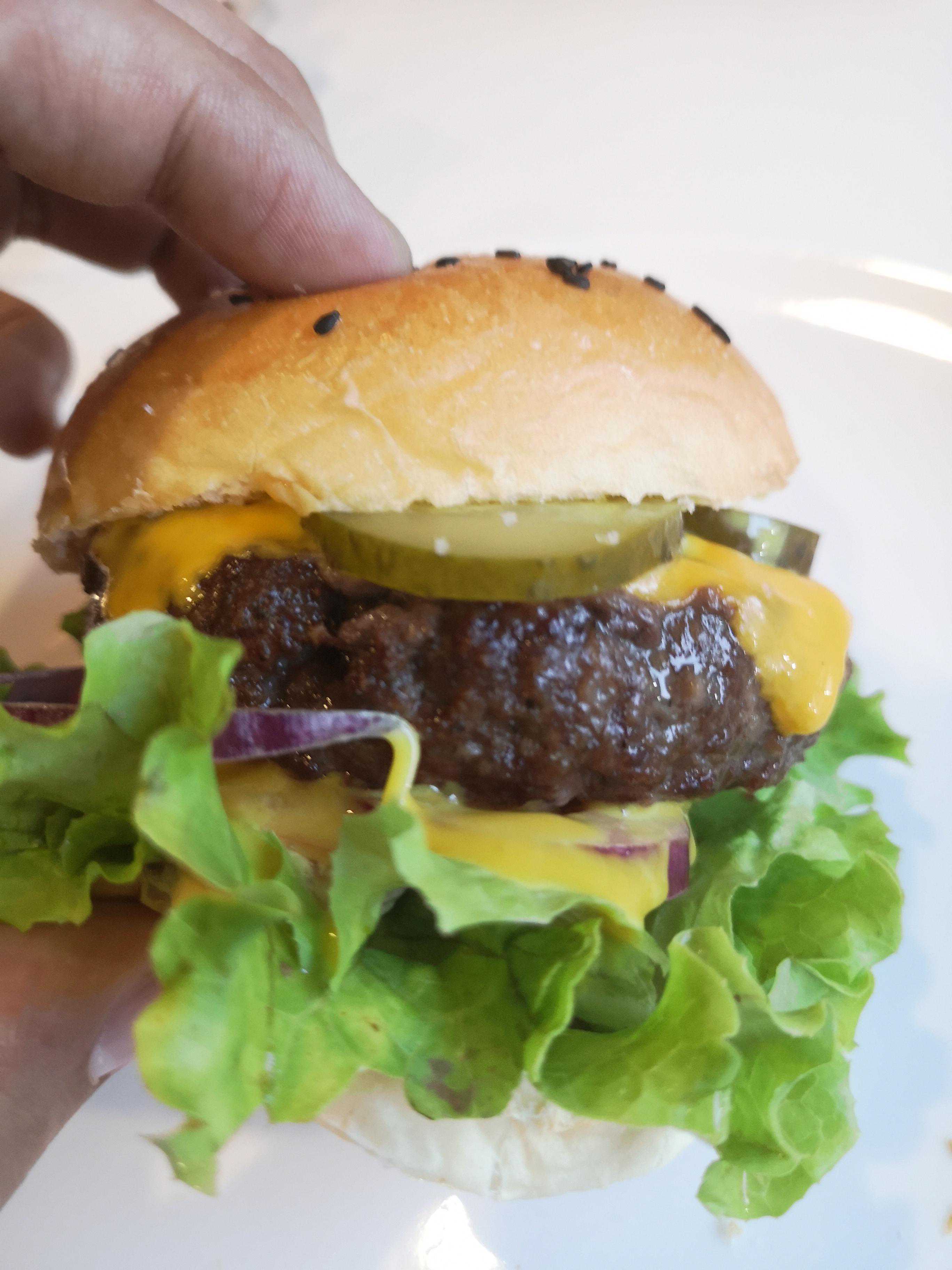 推荐牛肉汉堡,牛肉很厚实,酸黄瓜等配菜也很足。面包胚很酥脆,肉饼香嫩多汁,香而不腻,吃到嘴中饱满而又丰富。咬一口你会感受到肉排中的汁水融入口腔,肉排很软嫩我很喜欢。缺点:我个人很喜欢吃他家汉堡,如果你不耐吃比较软的肉排可能就不适合你。
